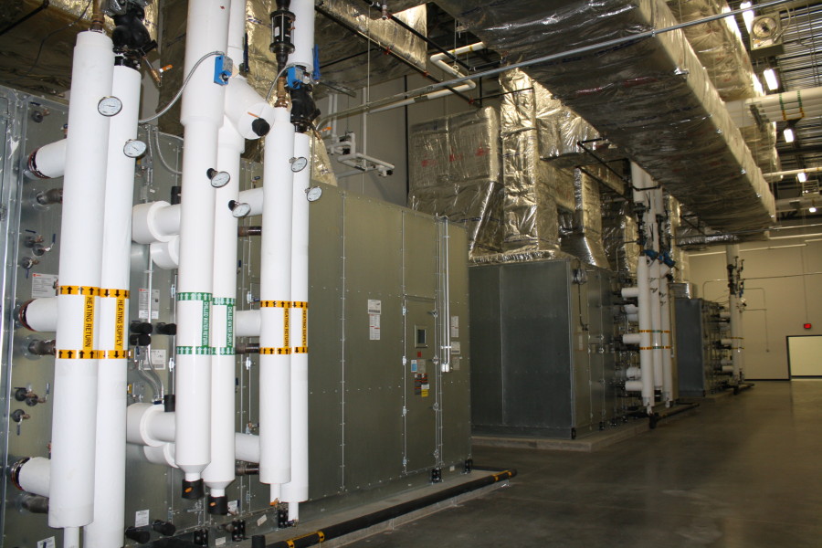 The facility contains offices, clean rooms, manufacturing spaces, laboratories, storage areas, and support areas. Manufacturing processes in the plant required a number of specialized mechanical and electrical systems.