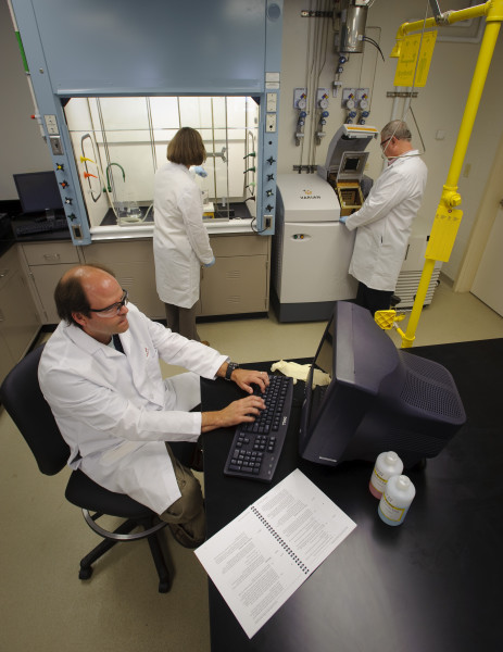 The facility is a two-story, 7,000 SF building that houses eight laboratory spaces (labs located in a Radiologically Controlled Area), offices, rest/change rooms, chemical storage room, elevator, mechanical room, outside gas cylinder storage area, and server room. The laboratories contain various instrumentation, eight high-performance, low-flow chemical fume hoods, and a wastewater evaporation system for a zero liquid discharge. Mechanical systems include a 100 percent outside air handling unit, HEPA filtration, laboratory exhaust fan, hot water heating, various gas distribution systems, process chilled water, demineralized water, and a wastewater evaporation system for zero liquid lab discharge. The building was designed to hazardous classification standards, located on-site and designed for future expansion up to 20,000 SF.