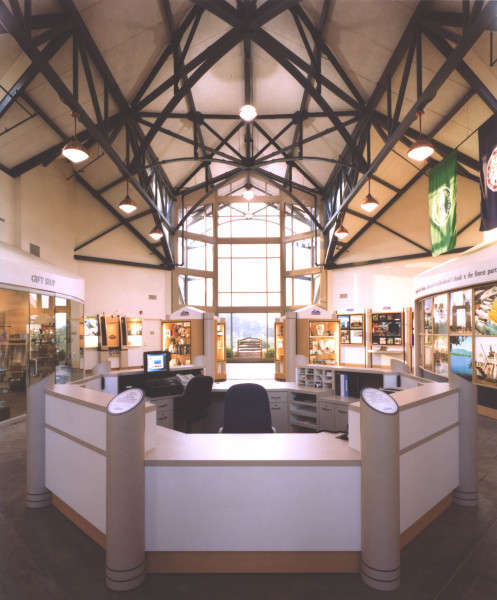 Wiley|Wilson’s architectural inspiration for the design for the Bedford Area Welcome Center was drawn from the rural farming community that Bedford represents. The materials specified, as well as the rooflines, cupola, and exposed structure, all signify rural structures found throughout the area as well as those along the nearby Blue Ridge Parkway. The interior exposed structure reflects the tone of many of the lodges found on the Parkway and the clapboard siding and cupola are reminiscent of the farmhouses and barns that still oversee the pastures and meadows of Bedford County.