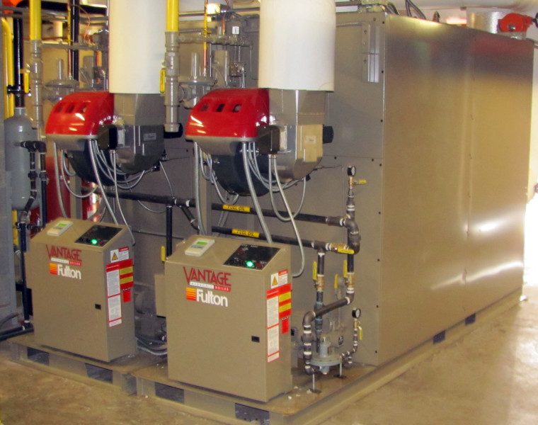 - Replacing oversized steam boilers with dual-fuel hot water condensing boilers