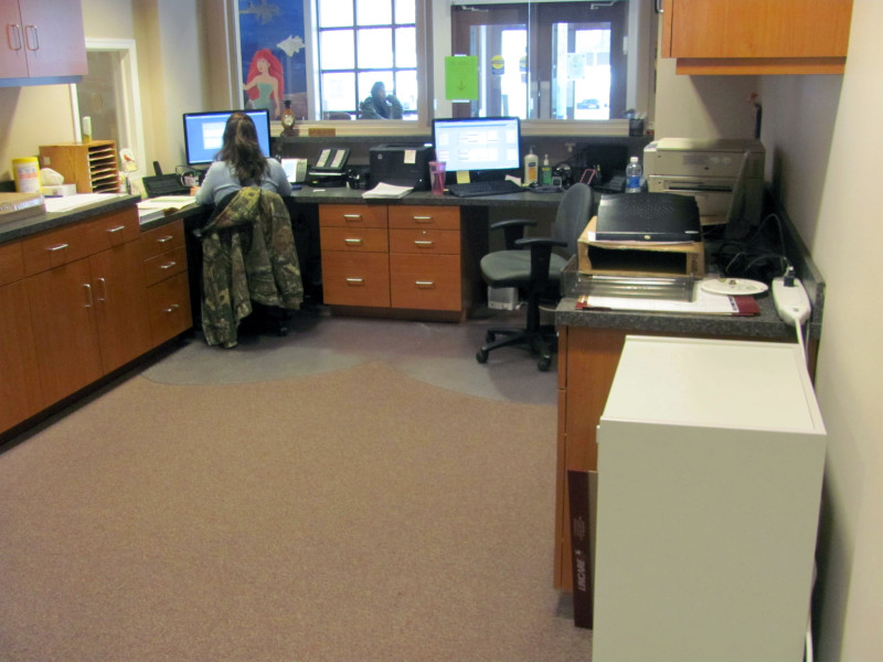 The architectural design included six new office spaces, upgrades to the reception/waiting area, a new bathroom, and color schemes for updated interior paint and finishes. The mechanical and electrical design included new split systems for verifying ventilation air re-use, a new back-up generator capable of running all functions within the building during a power outage, and interior lighting.
